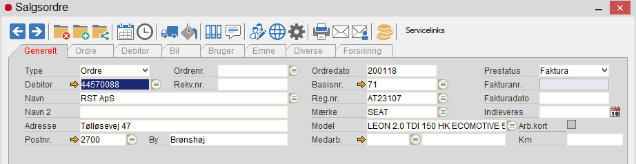 Åben salgsordrevinduet og klik på værktøjsikonet