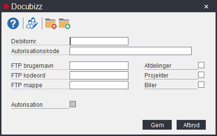 Kunde nr., Autoristationskode, FTP brugernavn, FTP kodeord, FTP mappe
