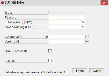 Her indtastes det leverandørnr. ,som GS Bildeler har i Helios.
